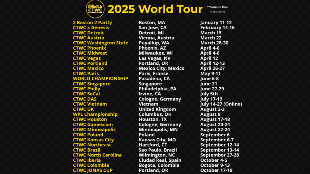 Here are the dates for the 2025 CTWC Regional Tournaments. This page will be updated as more events, venues, and dates get confirmed.