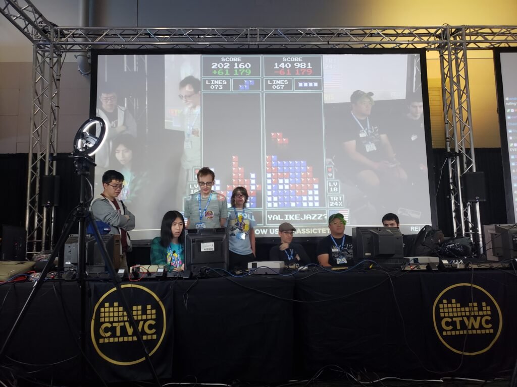 The next side event was Tetris Relay. Teams of 3 or 4 players are formed. In each game, the controller gets passed to the next teammate in line after every Tetris.